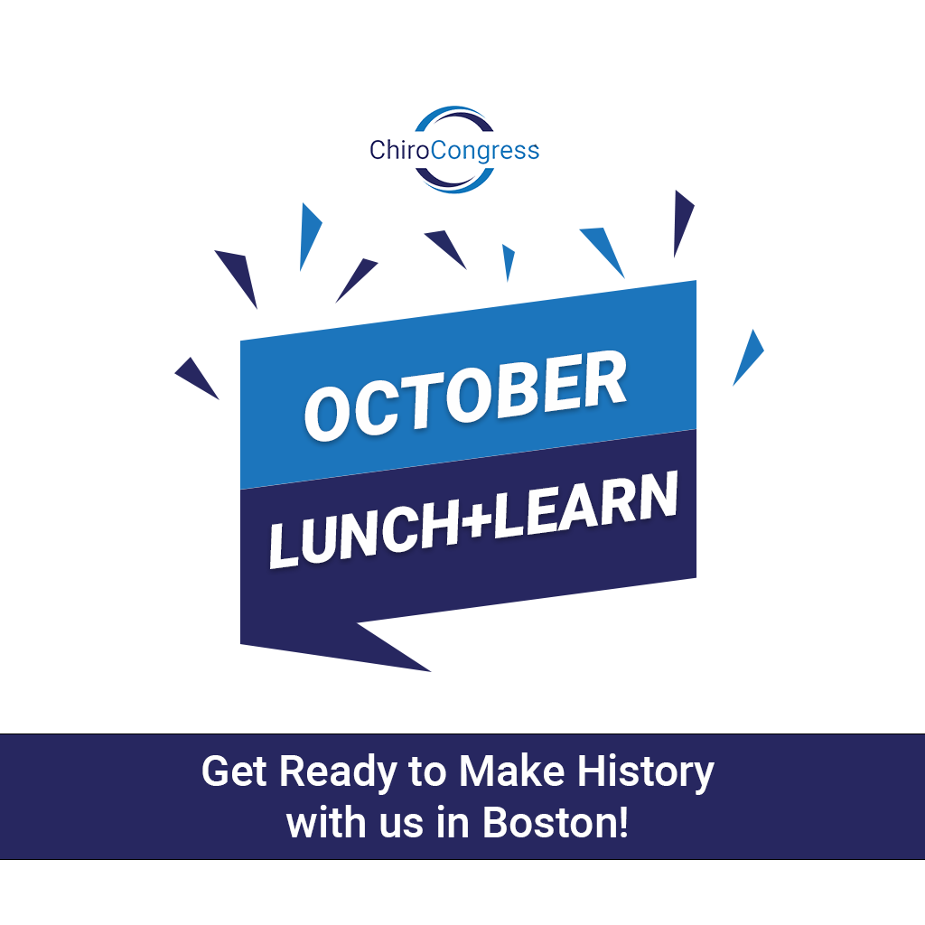 Lunch + Learn Join ChiroCongress every month for educational sessions that will give you the tools to improve your organization and your practice. October Lunch + Learn October 1, 2025 at 1:00 pm ET Get Ready to Make History with us in Boston! Log In & View Recording